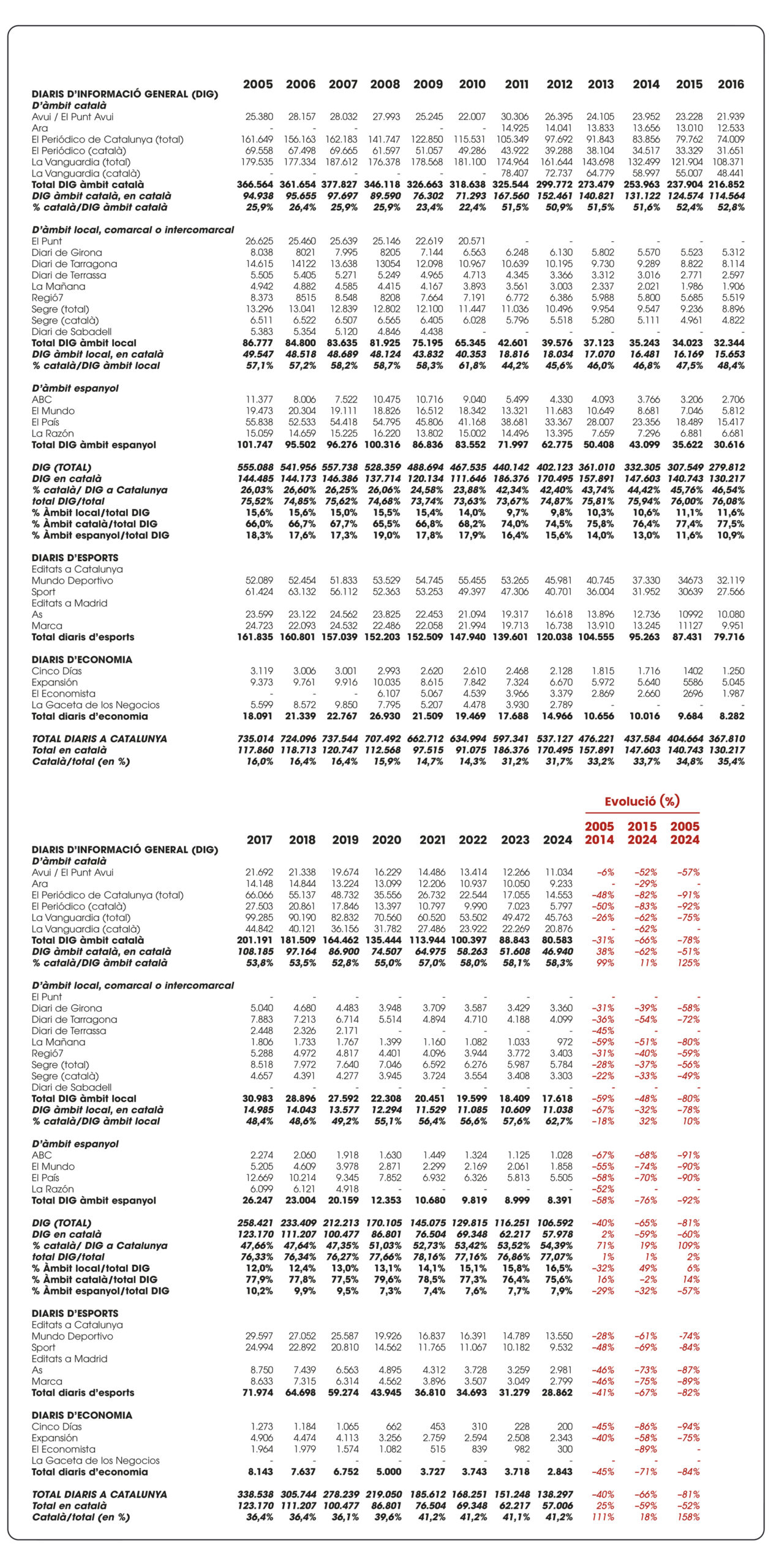 LA DIFUSIÓ TOTAL DELS DIARIS EN PAPER DE CATALUNYA