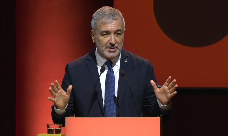 L’alcalde Jaume Collboni durant la seva intervenció [imatge: betevé].