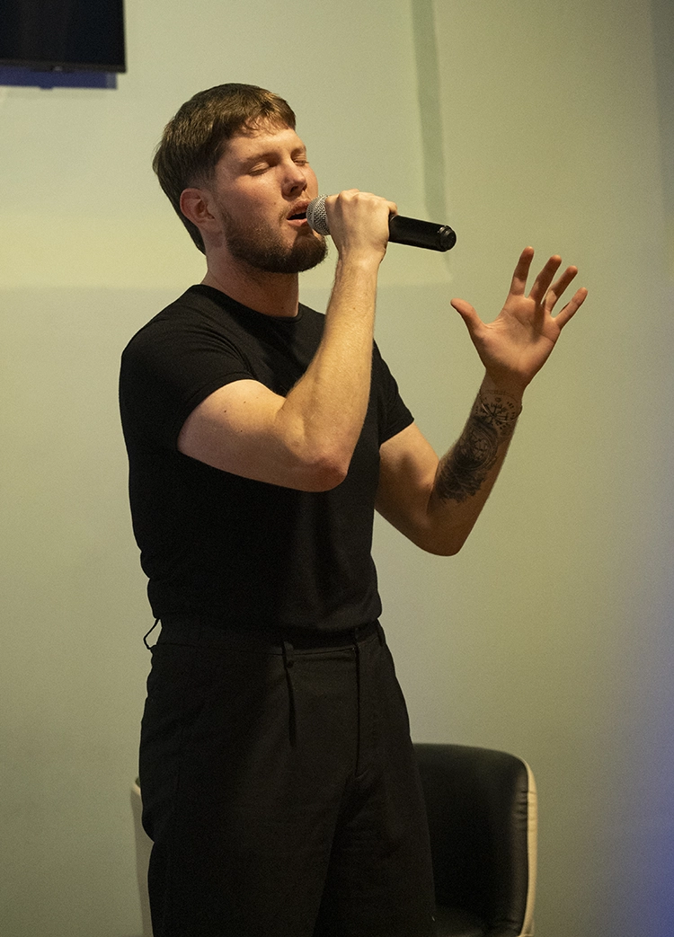 El cantant Fredrik durant la seva actuació a la gala [foto: Joanna Chichelnitzky].
