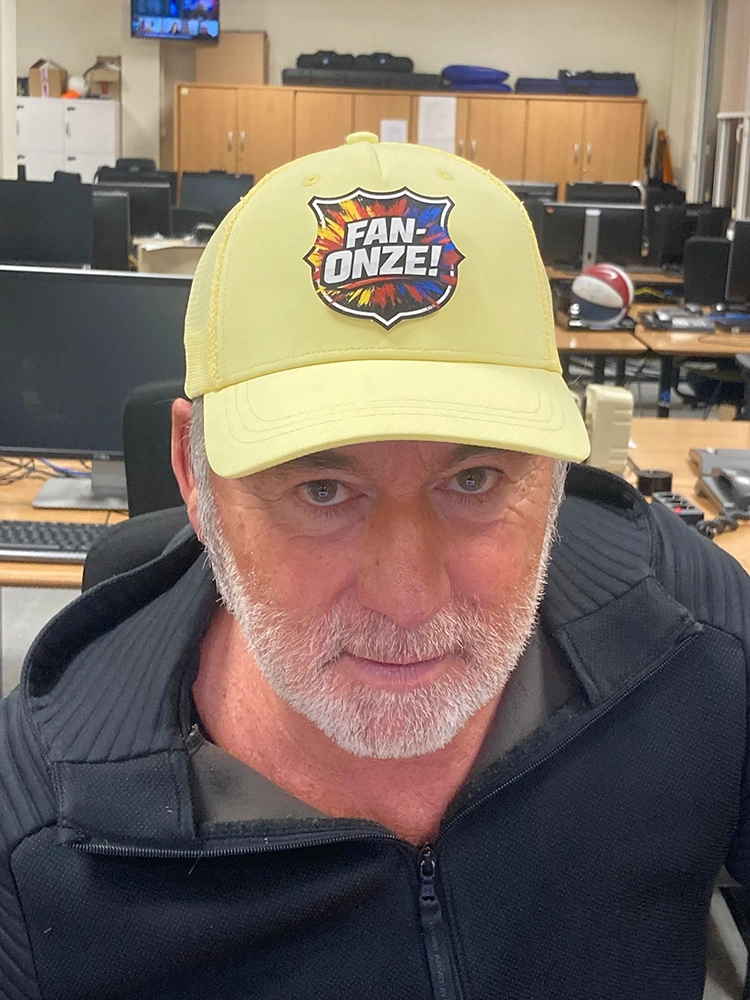 Xavier Valls amb la gorra ‘Fan Onze’ fent una picada d’ull a Gerard Romero [Foto: X]