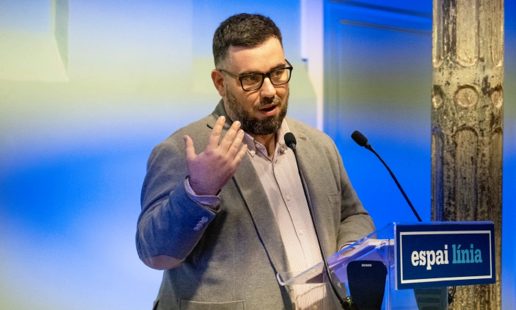 El director general de Polítiques Públiques LGBTI+ del Departament d’Igualtat i Feminisme de la Generalitat, Alberto Lacasta, durant el seu parlament [foto: Joanna Chichelnitzky].