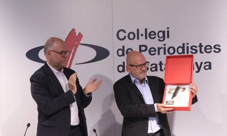 Ramon Besa i Camprubí va rebre aquest dilluns el Premi Ofici de Periodista 2025, el màxim guardó del Col·legi de Periodistes de Catalunya. Besa ha estat guardonat “per la seva trajectòria exemplar, per l’èmfasi en l’ètica, pel paper de mestre i de referent i pel seu compromís amb el Col·legi”, va remarcar el degà Joan Maria Morros.